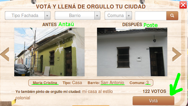 5) Jam preskaŭ! Nun klaku la bildon, ĝi aperos pli granda. Ĉe la suba parto aperos mesaĝo «Votá» (Voĉdonu), bv fari tion :). Denove certigi bv ke estas la sama kiu aperas en la bildo!